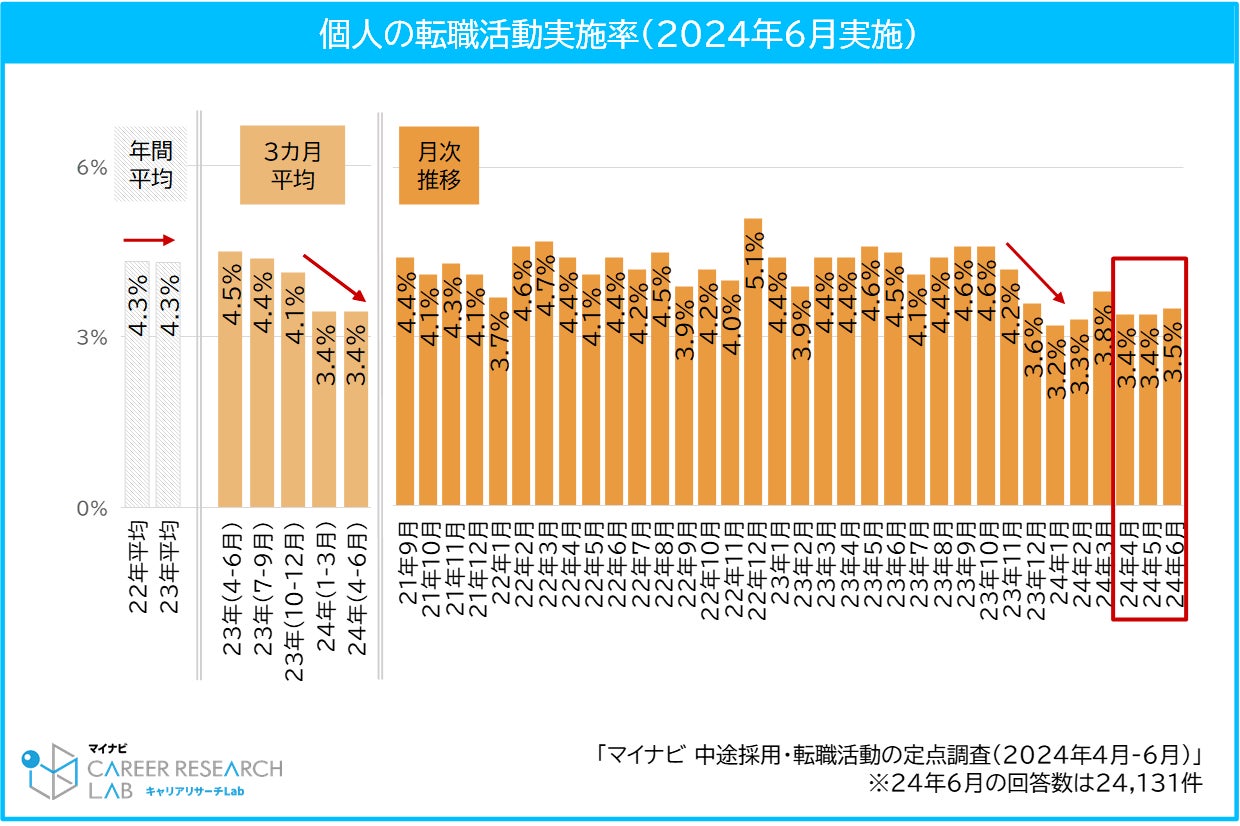 株式会社マイナビ(本社:東京都千代田区、代表取締役 社長執行役員:土屋芳明)は、全国の企業、個人を対象に実施した、「中途採用・転職活動の定点調査(2024年4月-6月)」の結果を発表しました。