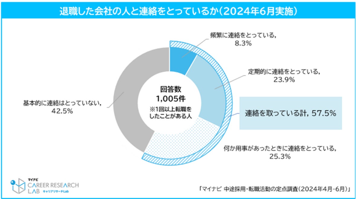 過去転職をしたことがある人に、退職した会社の人と連絡をとっているか聞いたところ、もっとも多かったのは「基本的に連絡はとっていない」で42.5%だった。【図5】