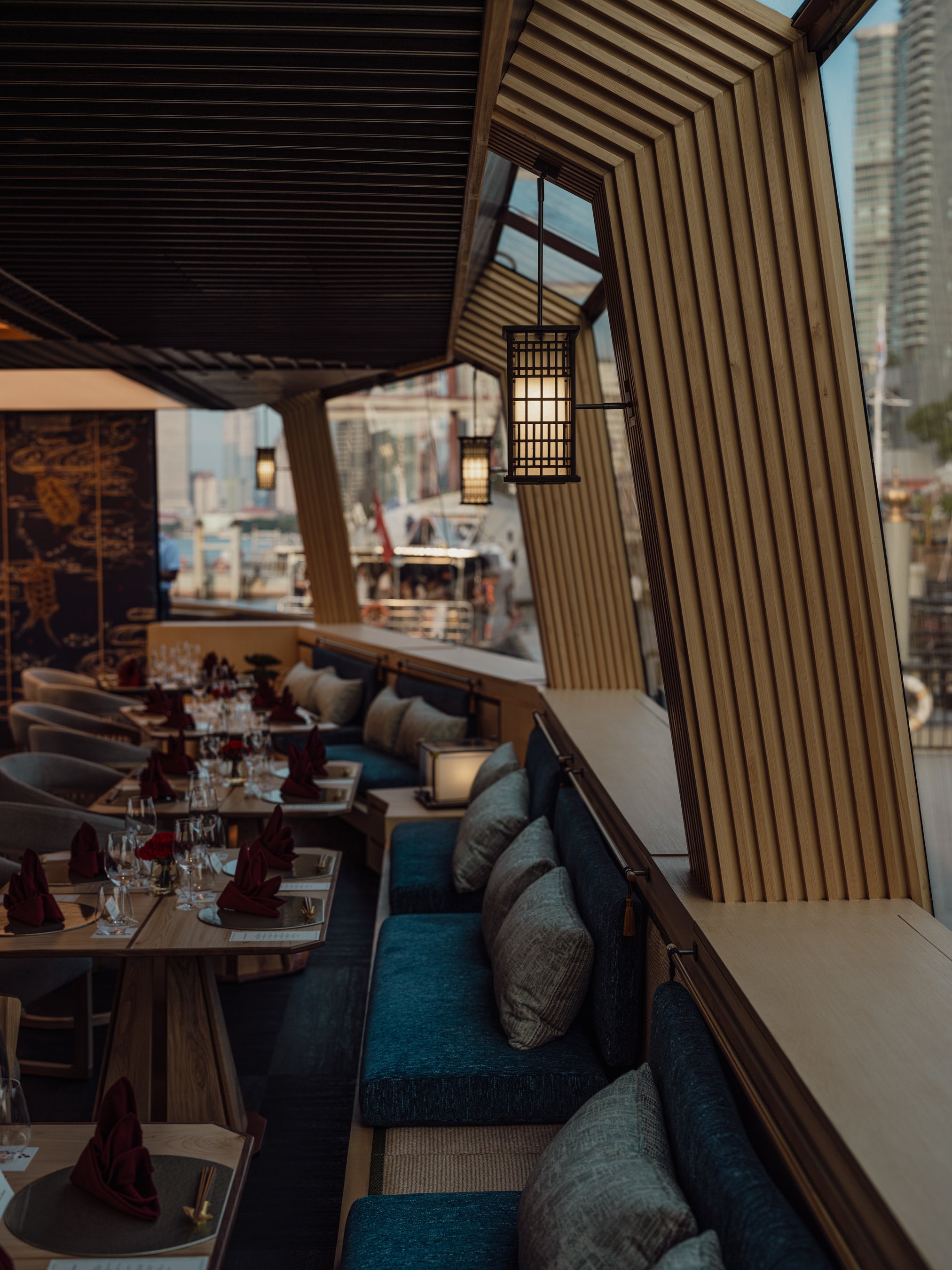 デザインには日本の美意識へのオマージュが込められており、折り紙から着想を得た外観には波が描かれ、そして船内には和の伝統的な意匠が取り入れられています。