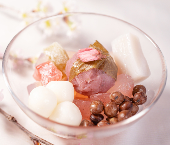 桜の香り豊かな季節限定の葛よせ。葛のなめらかな喉ごしと、丁寧に練り上げた餡(あん)の風味をお楽しみいただけます。