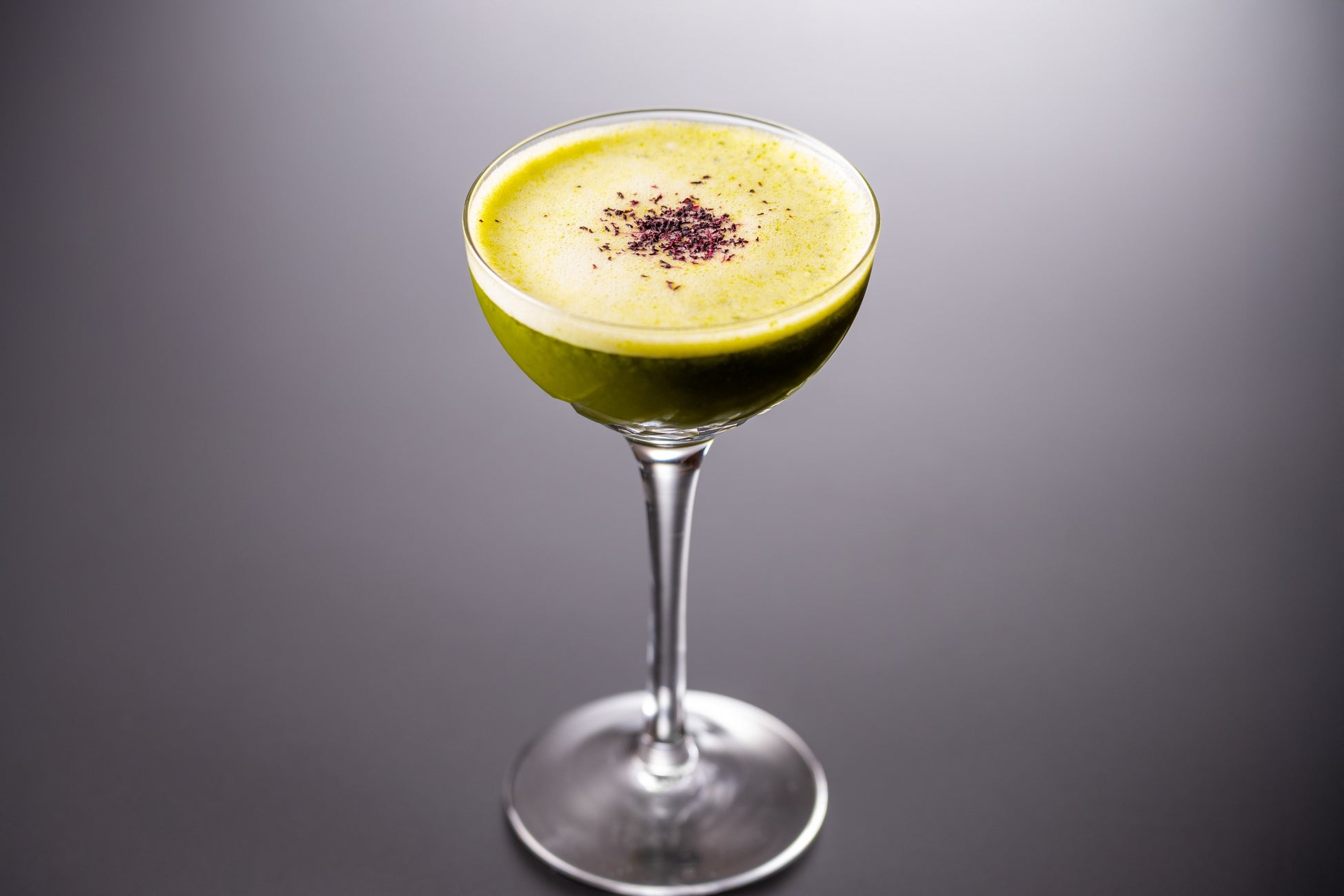 『喜びの舞』は、藤井が幼いころから親しんだ芸北神楽の八岐大蛇(やまたのおろち)にインスパイアされて生まれた1杯です。 賀茂鶴酒造株式会社の“賀茂鶴 純米酒”をメインに“純米酒仕込 梅酒”をブレンド。ほうれん草のピュレや甘酒を使用したシロップが味のアクセントになっています。ほうれん草は茎ごと使用することで、よりフレッシュな旨みを感じさせます。藻塩を加え、神楽で大蛇が飲む「八塩折之酒」を表現。秘められたストーリーとともに味わっていただきたい1杯です。
