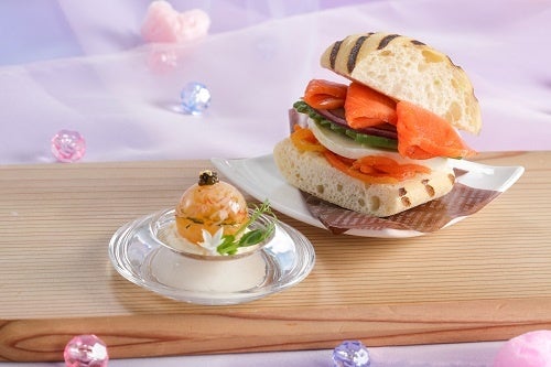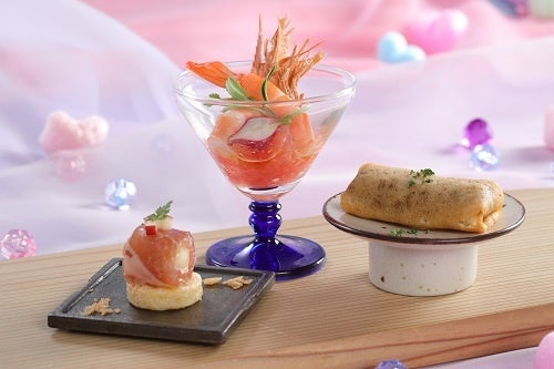 淡いパステルカラーで彩られた幻想的な空気感をテーマに、ユニコーンやハートモチーフのスイーツでまるでおとぎ話のような時間を楽しむアフタヌーンティーをご用意します。味わいとともに視覚的な楽しさも演出しています。また、カニとコンソメをスノードームに見立てたカリフラワーのムースや天使の海老とグレープフルーツのマリネなど、見た目も華やかなセイボリーとともに、最後まで味の変化をお楽しみいただけます。甘くてかわいいものを詰め込んだアフタヌーンティーで、心ときめく時間をお過ごしください。