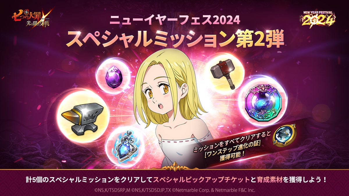 ネットマーブルは、スマートフォン向けシネマティックアドベンチャーRPG『七つの大罪 ~光と闇の交戦(ひかりとやみのグランドクロス)~』(略称:グラクロ)において、本日1月11日(木)より、ニューイヤーフェス2024の第2弾イベントを開始いたしました。