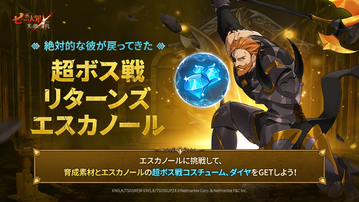 超ボスとして登場するエスカノールを攻略することで、ダイヤやエスカノール限定コスチュームなどの豪華報酬を手に入れることができます。