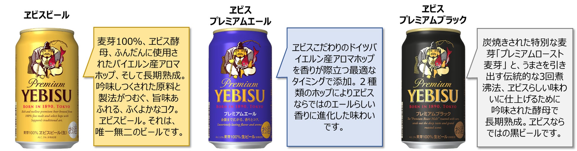※ほかにも、春夏限定品「ヱビス プレミアムホワイト」や、缶では秋冬期間限定品の「琥珀ヱビス」など、多彩なラインナップで展開しています。
