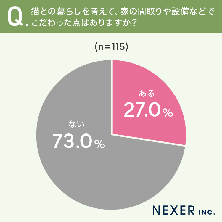 ■27%が、猫との暮らしを考えて家の間取りや設備などでこだわった点が「ある」