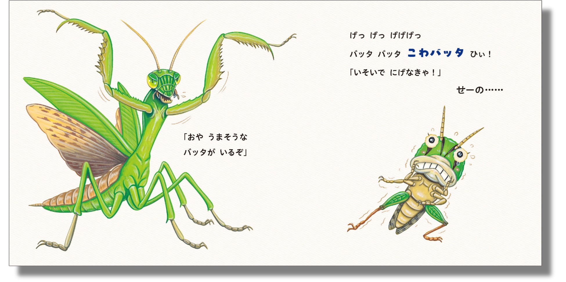 ぼくはバッタ。ちいさなバッタ。はやくおおきくなりたいな。バッタの成長過程を楽しみながら学べます。