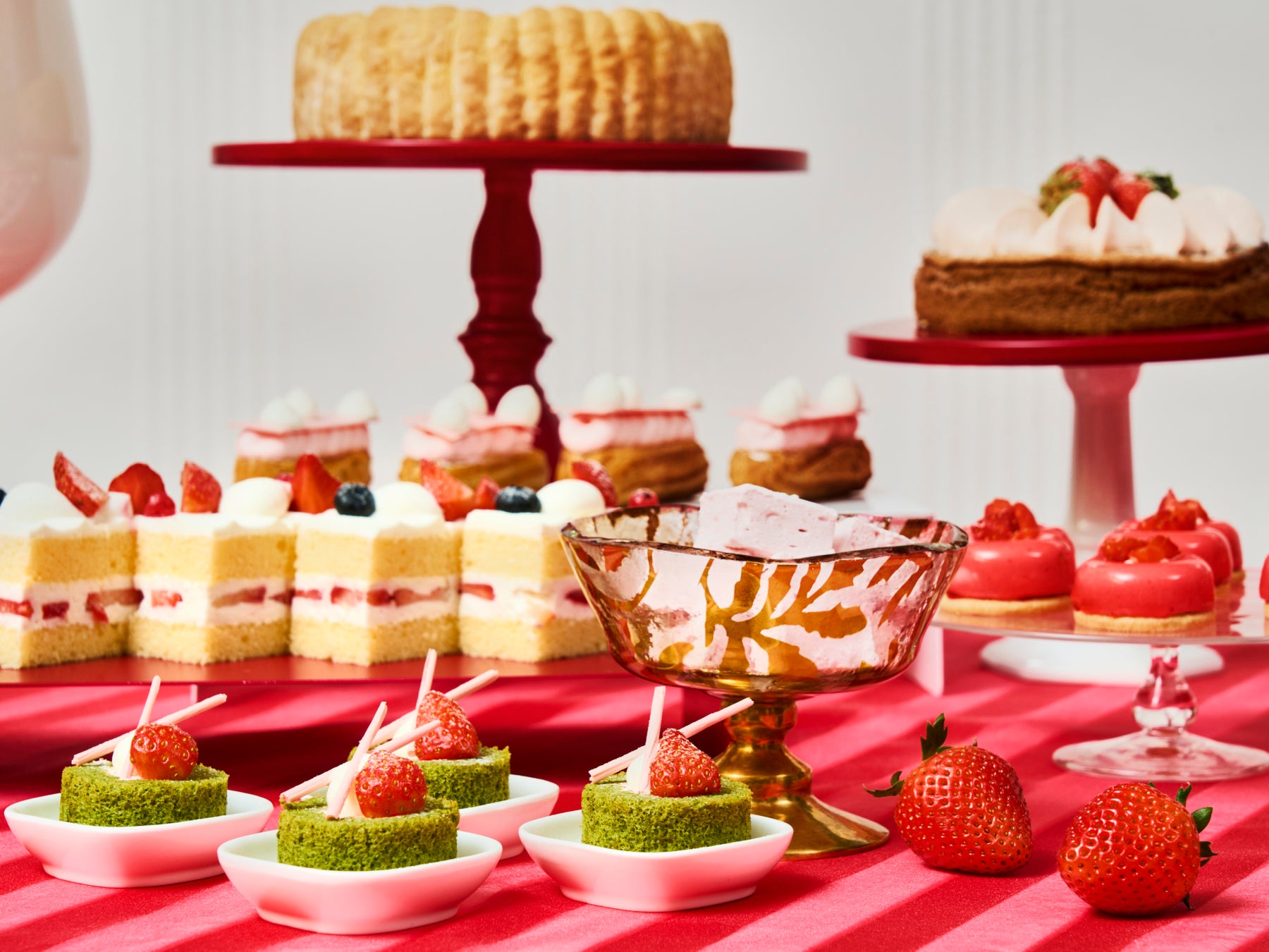 極上のスイーツでいちごを存分に堪能するアフタヌーンブッフェと、真っ赤ないちごや色とりどりの花を散りばめ、花々が咲き誇るお花畑のようなアフタヌーンティー