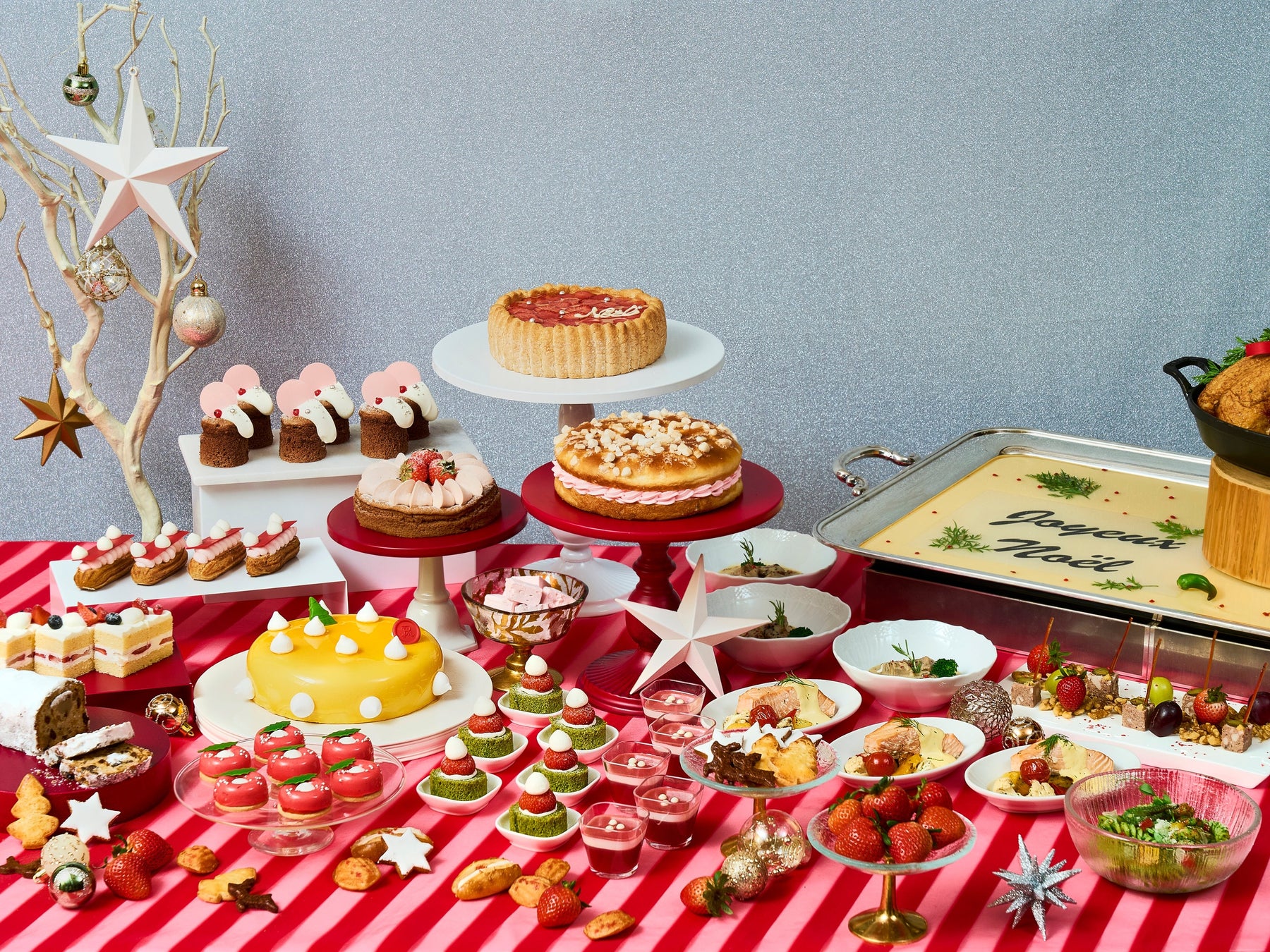 滑らかな口当たりの苺ムースにソテーした林檎の食感が際立つ「苺と林檎のムース」、きめ細かなチョコレートのシフォンケーキにいちご風味のホワイトチョコレートクリームを飾った「苺チョコシフォン」、甘いストロベリークリームとほろ苦い抹茶カスタード、香り高い抹茶スポンジの3層を愉しむ「抹茶ストロベリーロール」、そして、コク深く滑らかな生クリームに真っ赤ないちごのコンビネーションが定番の人気を誇る「ショートケーキ」や、煮詰めたいちごのピューレとラムネを混ぜ込んだ、ふわりととろけるような「苺ラムネギモーヴ」など、いちごを堪能する25種のスイーツがクリスマスの装いで煌びやかに並びます。厳選したフレッシュストロベリーも併せてお愉しみください。