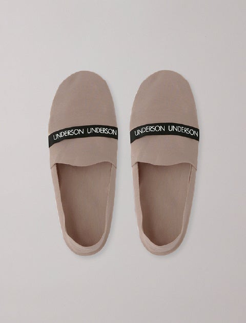 かかと部分に滑り止めを施し、足の甲部分にはブランドロゴ入りのストレッチテープを取り付けることにより