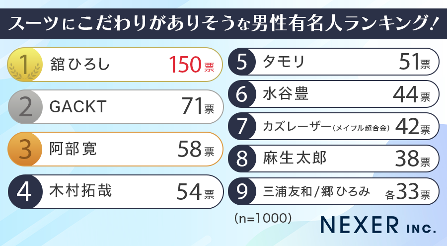 株式会社NEXER・スーツにこだわりがありそうな男性有名人に関する調査