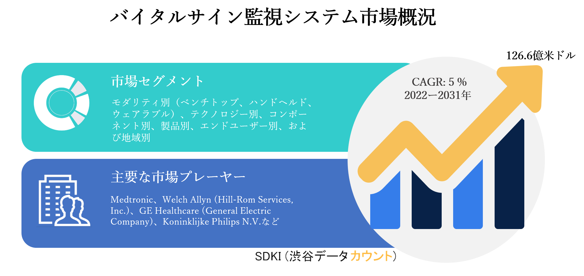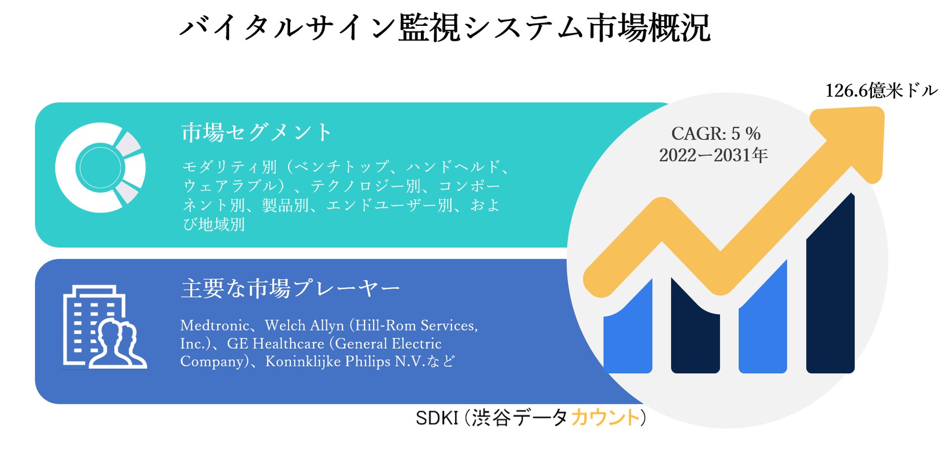 SDKI Inc.は、「バイタルサイン監視システム市場ー世界の予測2022ー2031年」新レポートを 2022年02月22日に発刊しました。この調査には、バイタルサイン監視システム市場の成長に必要な統計的および分析的アプローチが含まれています。レポートで提供される主要な産業の洞察は、市場の既存のシナリオに関する読者に市場の概要についてのより良いアイデアを提供します。さらに、レポートには、市場の成長に関連する現在および将来の市場動向に関する詳細な議論が含まれています。
