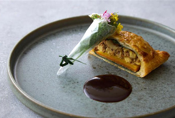 ・アイユタカとアーティチョークのパイ包み焼き ペリグーソース 石川県能登“あんがとう農園”の小さな花束を添えて