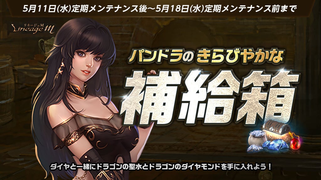 ダイヤに加え、「アインハザードの祝福」と経験値が手に入る「ドラゴンの聖水(イベント)」と、「ドラゴンのダイヤモンド」が獲得できる「パンドラのきらびやかな補給箱」が登場しました。