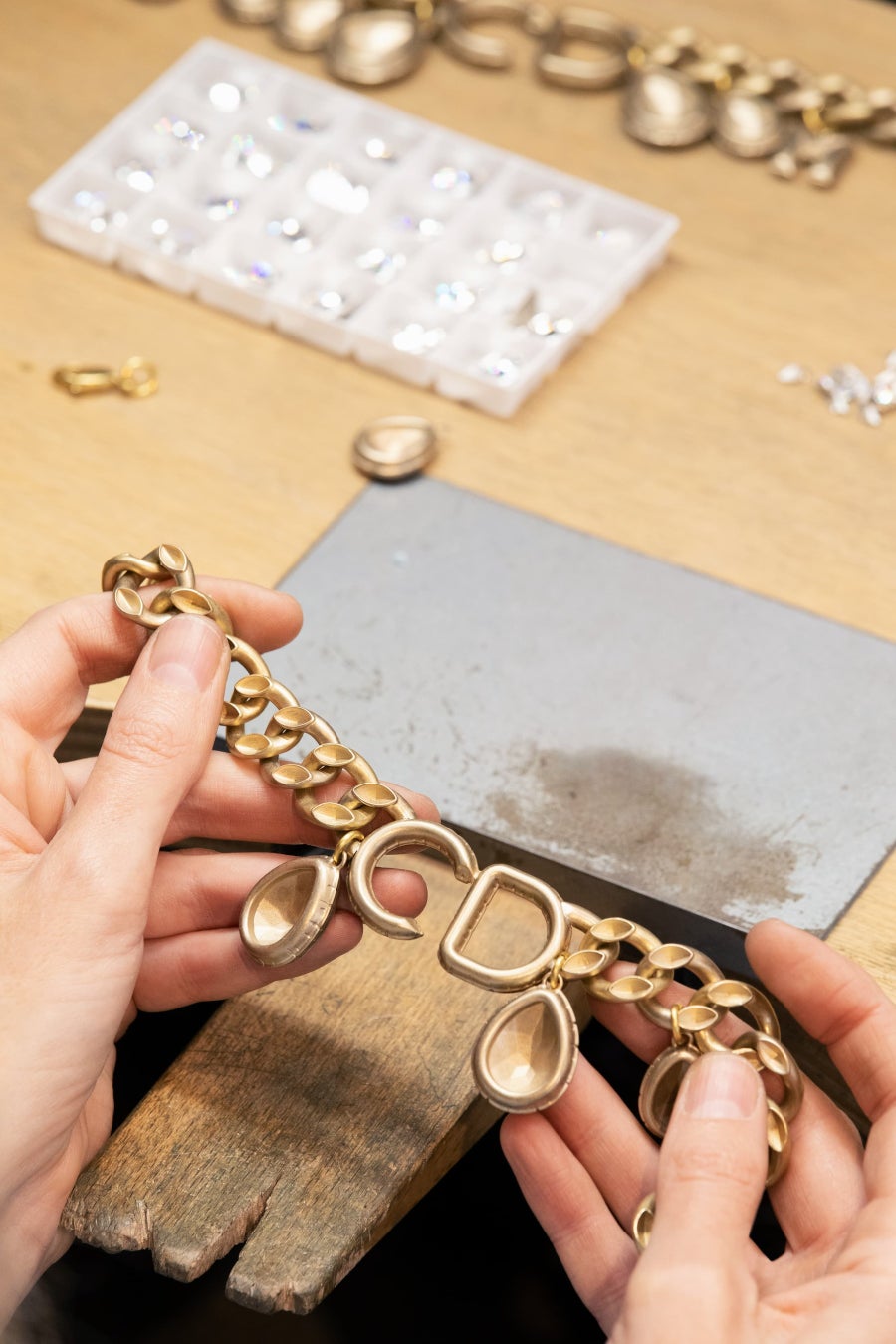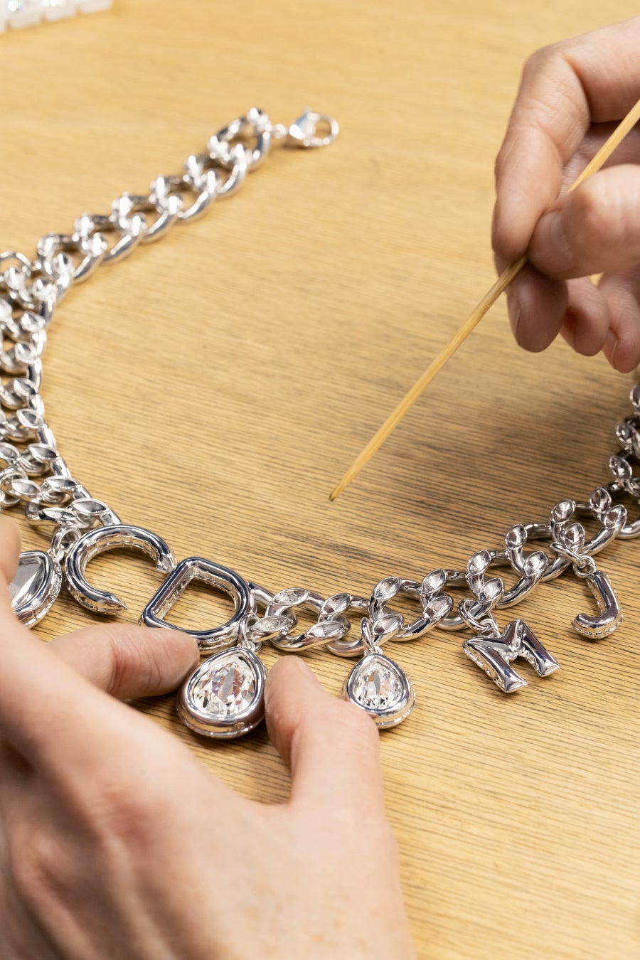 「マーク ジェイコブス」ブランド創設40周年を祝しキム・ジョーンズはアメリカのデザイナーであるマーク・ジェイコブスのアイコニックな世界観にインスパイアされたユニークなネックレスをデザインし、彼との特別な絆を讃えました。11月28日より20本限定で販売されるこの特別な作品において、キム・ジョーンズは、「マーク ジェイコブス」のシグネチャースタイルとラグジュアリーなディテールを巧みに融合させ、ボリュームのあるカーブしたチェーン、そして「CD」と「MJ」のイニシャル、バルーン型に細工された繊細なクリスタルのタッセルを組み合わせ、それぞれに遊び心のあるだまし絵効果を加えました。この魅惑的な再発明は、マーク・ジェイコブスとキム・ジョーンズの間の継続的な対話を反映しています。ディオールの時代を超越したエレガンスとモダンさ、そしてマーク・ジェイコブスのユニークな大胆さの両方を体現したこの魅惑的な作品は、2人の友情に新たな章を刻むとともに、ファッションに対する2人の変わらぬ情熱に贈る現代的な賛辞を贈ります。彼らの共有するビジョンを示すさまざまなプロジェクトでコラボレーションしてきたキム・ジョーンズは「マークは私のヒーローの一人です」と述べ、魅力的な作品でジェイコブスを称えます。このネックレスには、ディオールの時を超えたエレガンスとモダンさ、そしてマーク・ジェイコブスの創造的な大胆さが体現され、友情の新しい章とファッションへの永続的な情熱への現代的なオマージュが込められています。