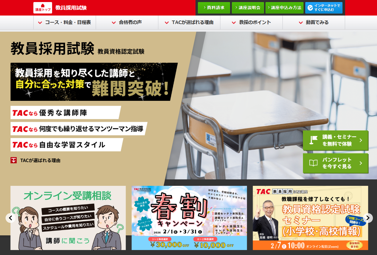 【TAC教員採用試験】2026年合格目標「セレクト本科生B」「速修セレクト本科生A」春割キャンペーン実施中!今から始めて効率的に教員合格を目指そう!