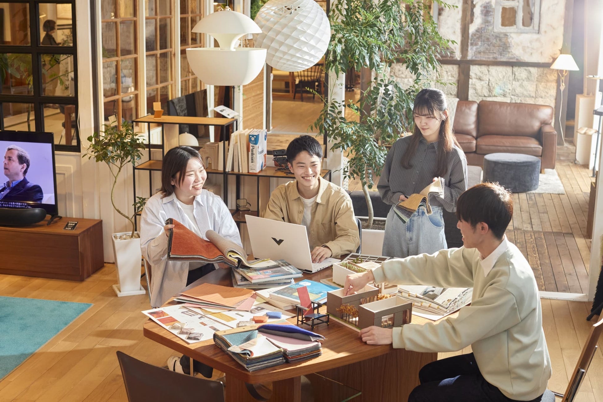 建築士学科/建築設計デザイン科(BIMデザインコース・AIデザインコース)/インテリアデザイン科(建築インテリアデザインコース・雑貨クラフトインテリアコース)/建築大工・リノベーション学科/建築IT基礎科