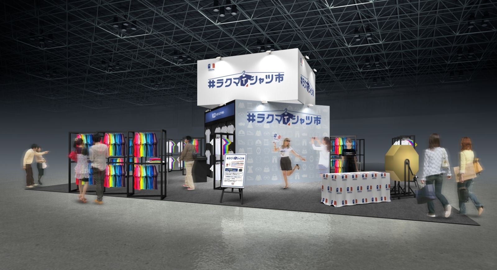 「#ラクマTシャツ市」には、事業者が「楽天ラクマ」へ公式に出店できる「ラクマ公式ショップ」に参画する、「古着屋BIG2nd's shop」「KLDラクマ店」「古着屋mellowラクマ店」(※アルファベット順)の3ショップが参加します。本イベントで販売する商品は、Tシャツを中心とした計1,000点以上のリユース商品です。通常「楽天ラクマ」を介したインターネット上の取引となりますが、ユーザー登録などの手続きなしで、本イベントで直接商品を手に触れて購入できるため、リアルな場で誰でも購入体験することができます。なお、会場内は、完全キャッシュレス決済となります(注)。