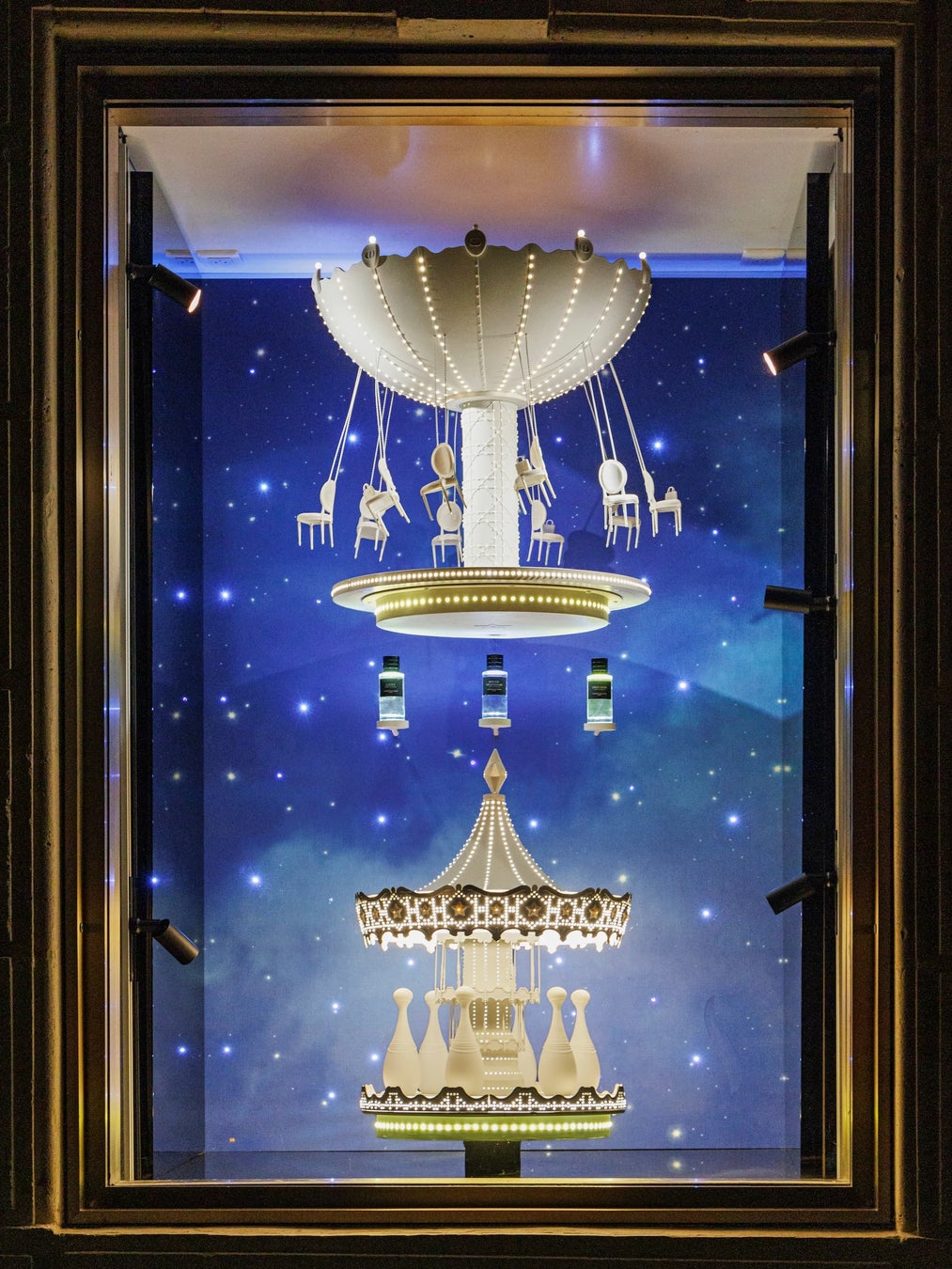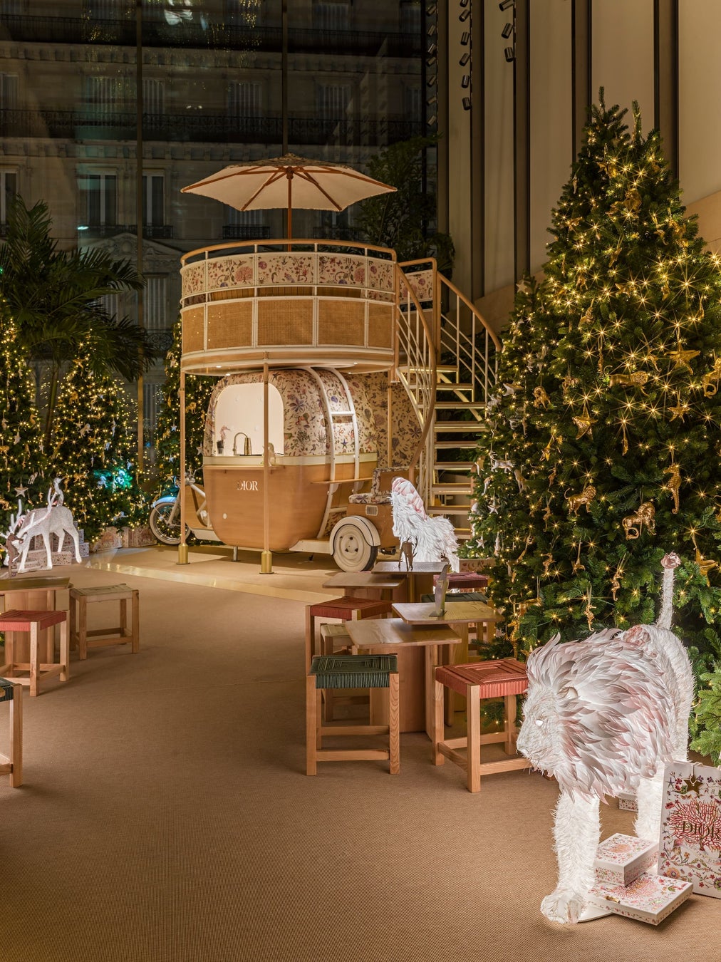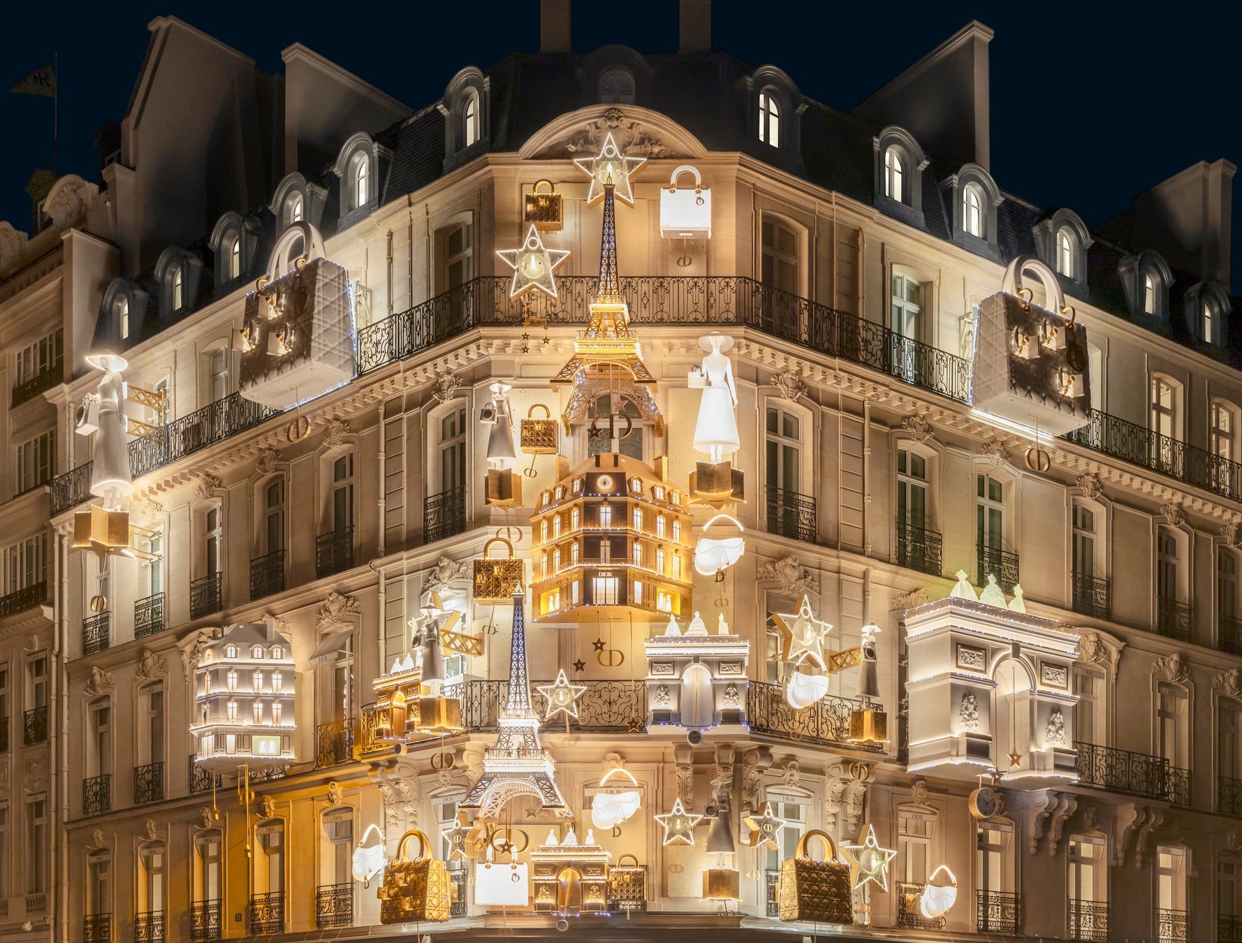 象徴的な本店「30モンテーニュ」が伝統と革新が融合したディオールの素晴らしいオデッセイを映し出す、まばゆいばかりのアニメーションで彩られます。夢と逃避への誘いのように、ブティックのファサードは賑やかな鳩時計で飾られ魅力的な雰囲気が多種多様な輝きで引き立てられます。そのインスタレーションは、パリの象徴的なランドマーク「エッフェル塔」やタイムレスなディオールのコード、例えば「ラッキースター」、象徴的な「バー」スーツ、そして「レディ ディオール」や「サドル」バッグなどを際立たせ、これらの貴重なシンボルは、毎晩魔法のように動き出します。ミニチュアアートへの賛歌、魅惑的な絵画がウィンドウディスプレイを彩り、小さな劇場へと変貌します。過去から現在に至るディオールの数奇な運命をたどる魅力的なスケッチとともに、驚くべき音の冒険: グランヴィルでの創設者クリスチャン・ディオールの幼少期、「ニュールック」革命の勝利、ショーの驚異的な熱気と舞台裏の秘密、「ラ ギャラリー ディオール」の設立、そしてシグネチャーの幾度にもわたる改革。これらのストーリーは、プレタポルテからファイン ジュエリーまで、卓越したモデルの数々を散りばめたスノードームや繊細な小物入れに収められました。このセッティングは昨年ニューヨークの百貨店のファサードと店内に設置されたディオールの「カルーセル オブ ドリームズ アット サックス」の装飾を再利用したもの。クチュールの洗練とディオールのエレガンスへのオマージュが何重にも施され、イマジネーションの限界をかつてないほどに押し広げました。ブティックの中では、ユニコーン、ライオン、クローバー、サンゴ、タツノオトシゴが詩情豊かに空間を彩り、マリア・グラツィア・キウリが考案した2025年クルーズコレクションの「ディオール アラウンド ザ ワールド」、「ミレフィオリ ユニコーン」、「ディオール キャビネ ドゥ ラ メール」モチーフを彷彿とさせる幻想的で珍しい生き物たちが登場します。究極のサプライズとして「ウインター ガーデン」と名付けられた場所に、美味しいひとときを提供する期間限定のカフェが登場します。比類のない体験が、喜び、感動、そして共有の喜びに満ちた瞬間を約束します。