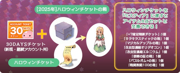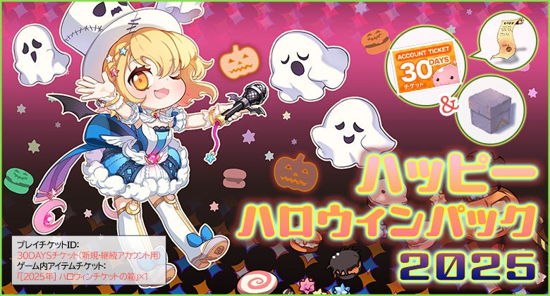 ▼プレイチケット 30DAYSチケット(新規・継続アカウント用) ▼ゲーム内アイテムチケット 「[2025年] ハロウィンチケットの箱」(1個) |