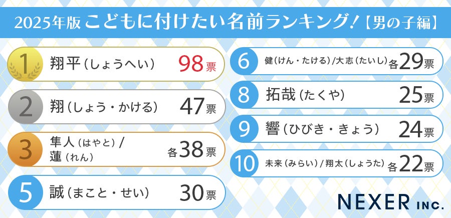 株式会社NEXER・男の子に付けたい名前に関する調査
