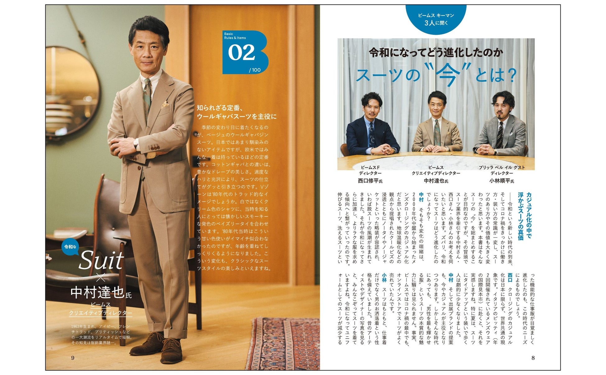 ビームスのドレスクロージングのキーマン3人に、スーツの”今”とは?を聞いた特別鼎談。今を表現したウェルドレッサーの着こなし例と共にご紹介。