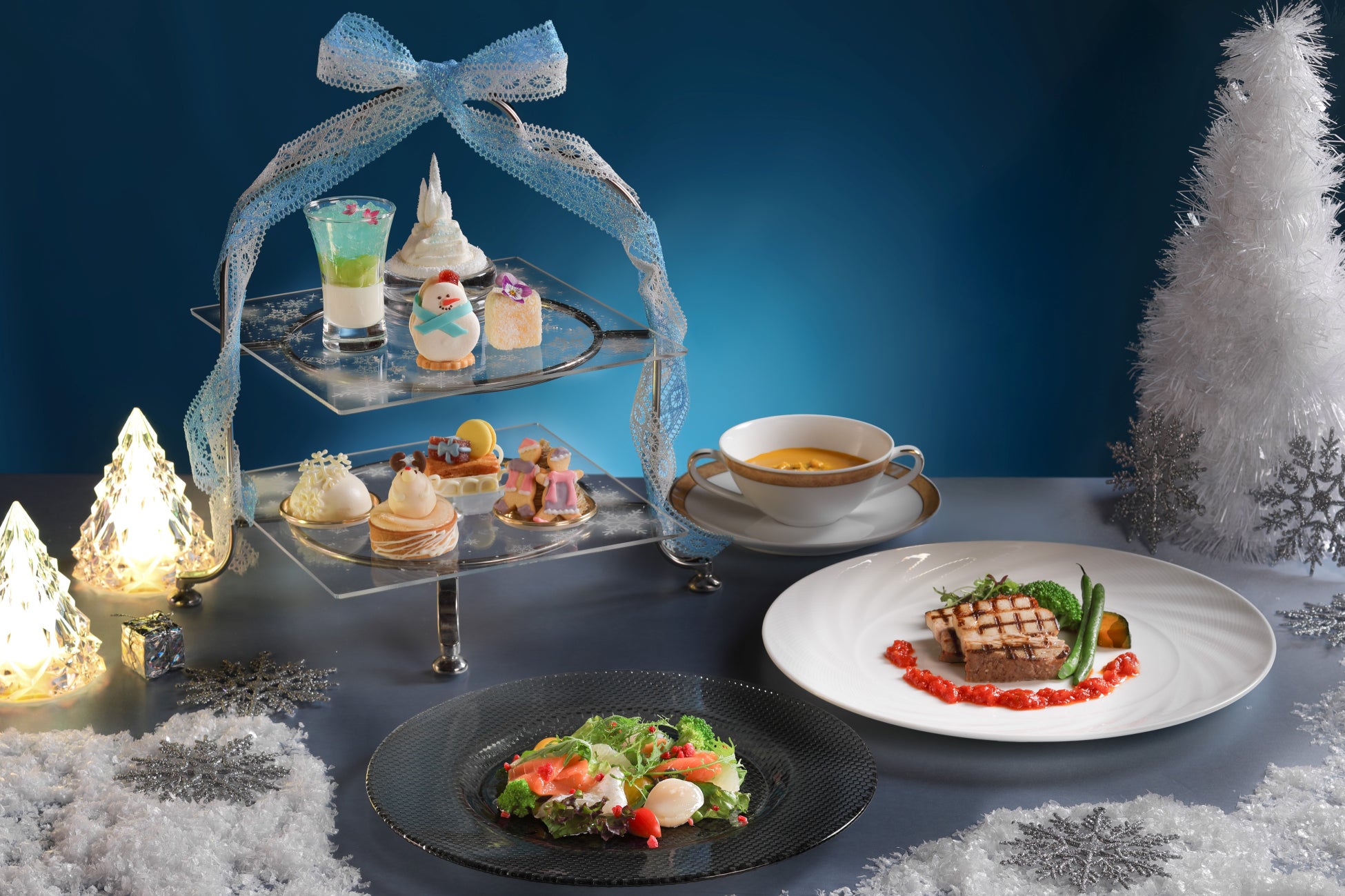 レストラン&ラウンジ・バー eu(ゆう)では、童話「雪の女王」をテーマに、氷の城や雪の結晶をイメージしたスイーツなどが楽しめるアフタヌーンティーをご用意します。また、カフェ&グルメショップ カフェベルでは、「雪の女王」のスイーツをご自宅でもお楽しみいただけるよう、アフタヌーンティーのアイテムの中から3種類をアレンジし、販売します。