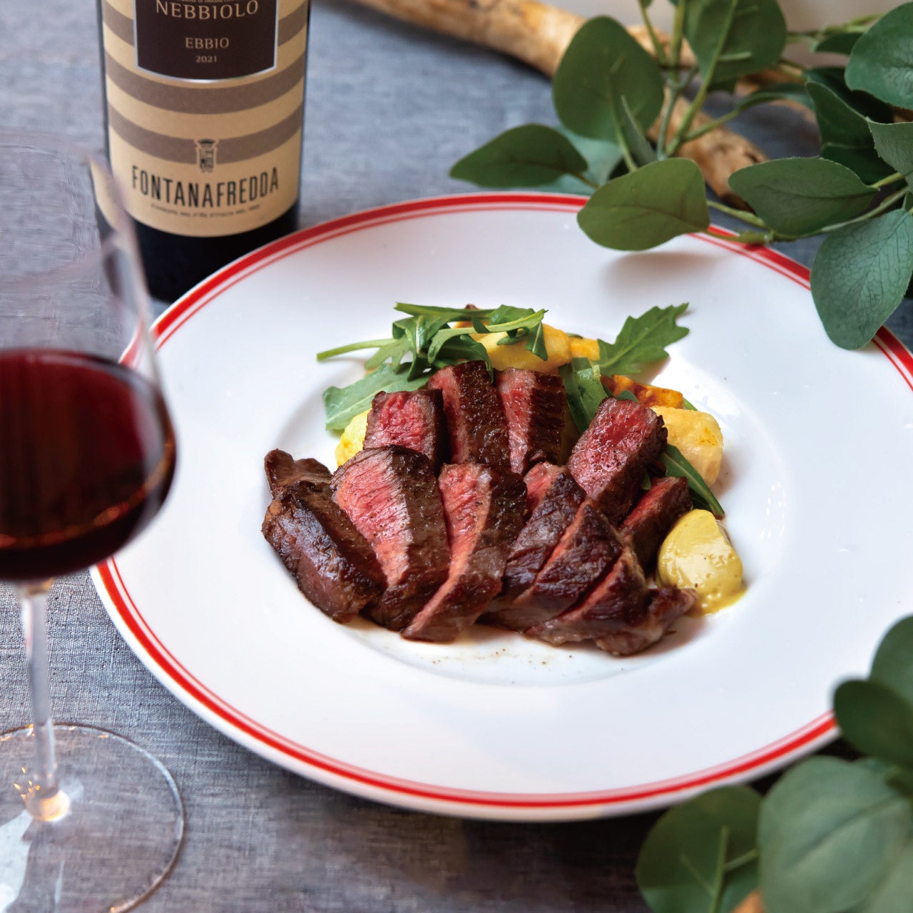 キメ細かく上質な肉質の北海道サロマ黒牛のビステッカをメインに、ちょっと贅沢なプランです。※Bistecca=イタリア語でビーフステーキのこと