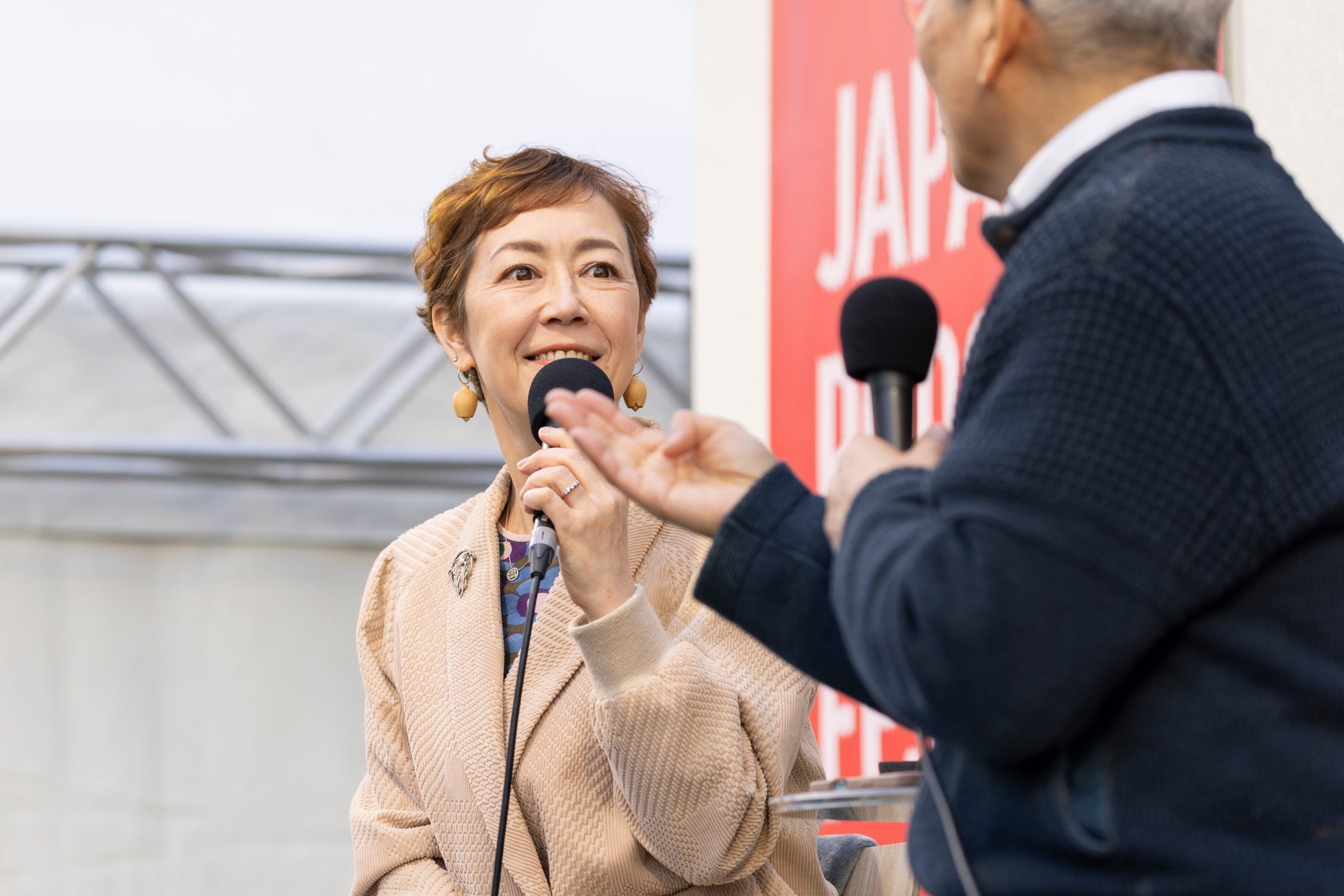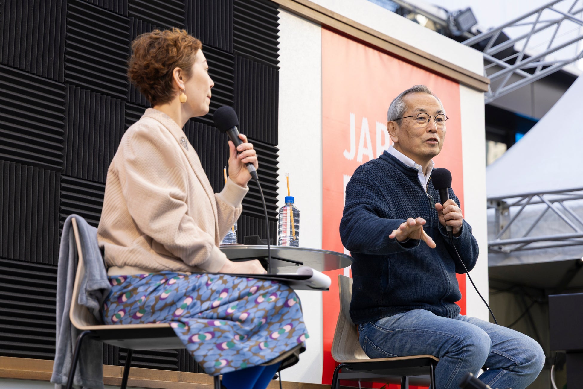 大勢のファンの拍手と歓声に迎えられ、ステージに土井善晴とクリス智子が登場した。二人のポッドキャストが始まって3年半。今回は番組初となる公開収録だ。会場は笑顔に包まれ、いつも以上に熱を帯びた“料理を哲学する”トークが繰り広げられた。