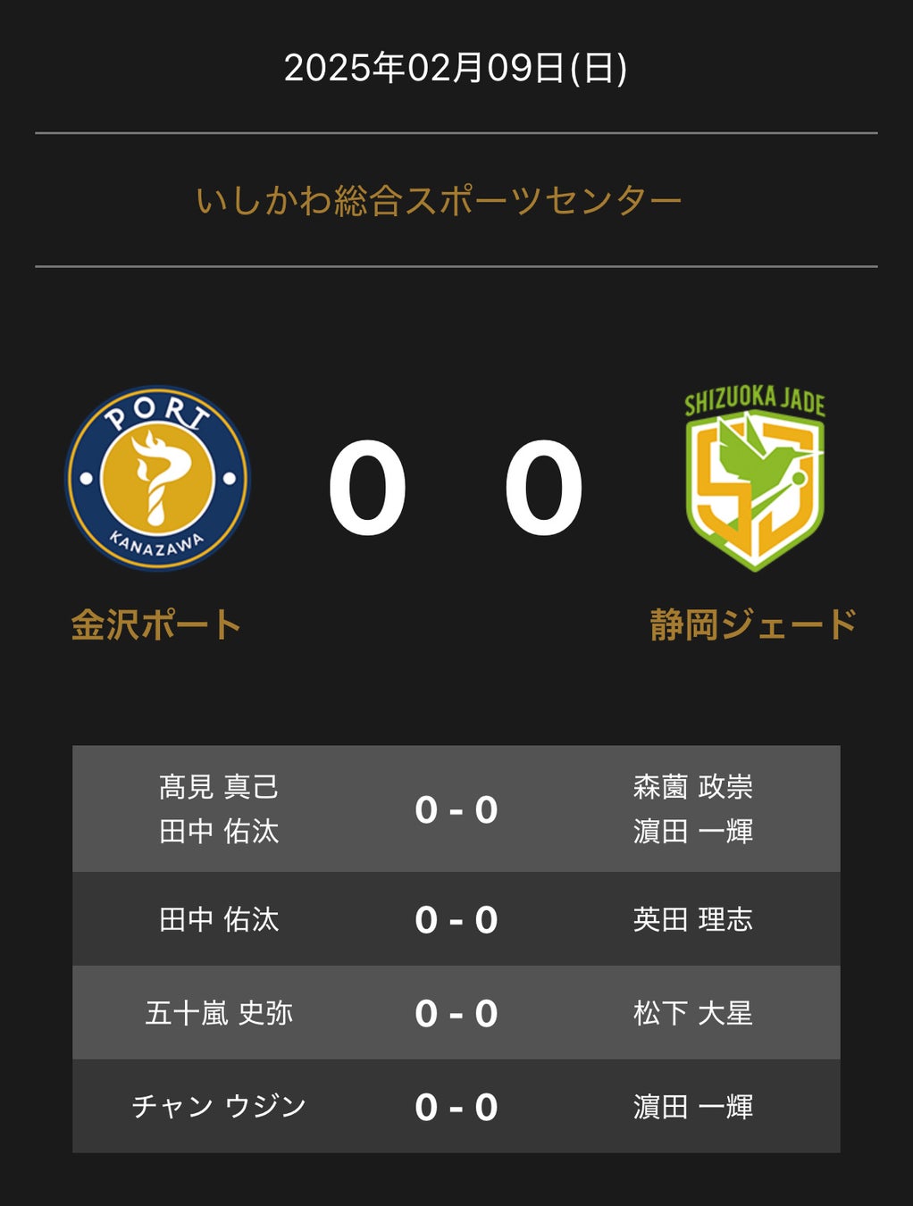 ノジマTリーグ 2024-2025シーズン 公式戦 2月9日開催金沢ポート vs 静岡ジェードの対戦オーダーを発表いたします。