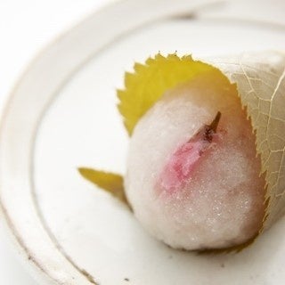 白小豆を道明寺で包んださくら餅。塩漬けした桜の葉がほんのり香ります。