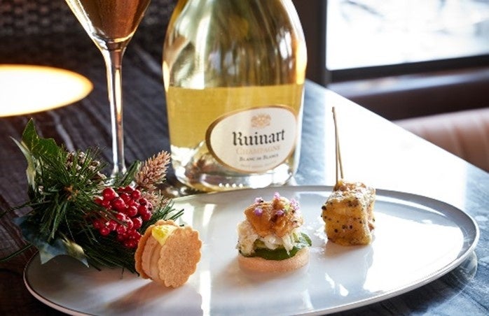 料金:15,000円(おひとり様、食事のみ)、29,000円(おひとり様、食事と「ルイナール ブラン・ド・ブラン」2名様でフルボトル1本付き、窓際席確約、2名様からのご予約のみ)
