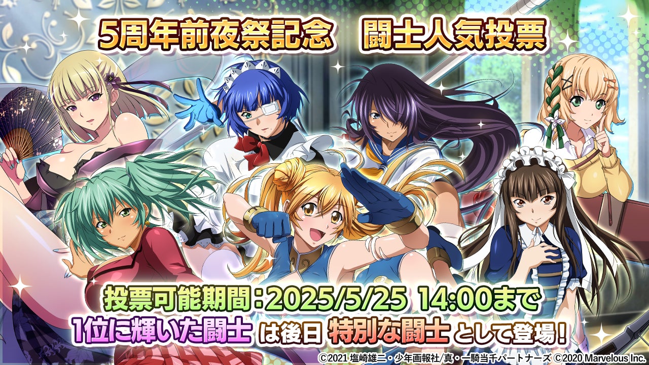 引き続き、5周年前夜祭記念「闘士人気投票」を開催中!