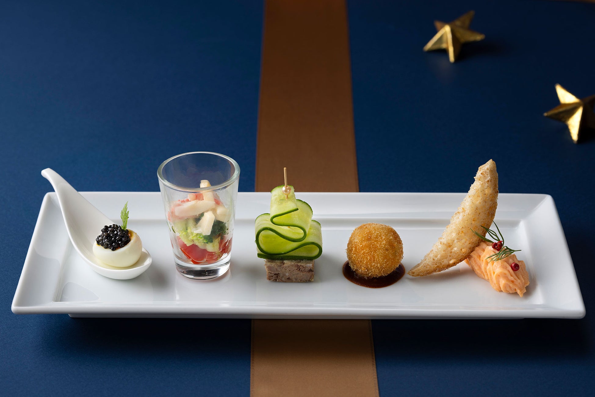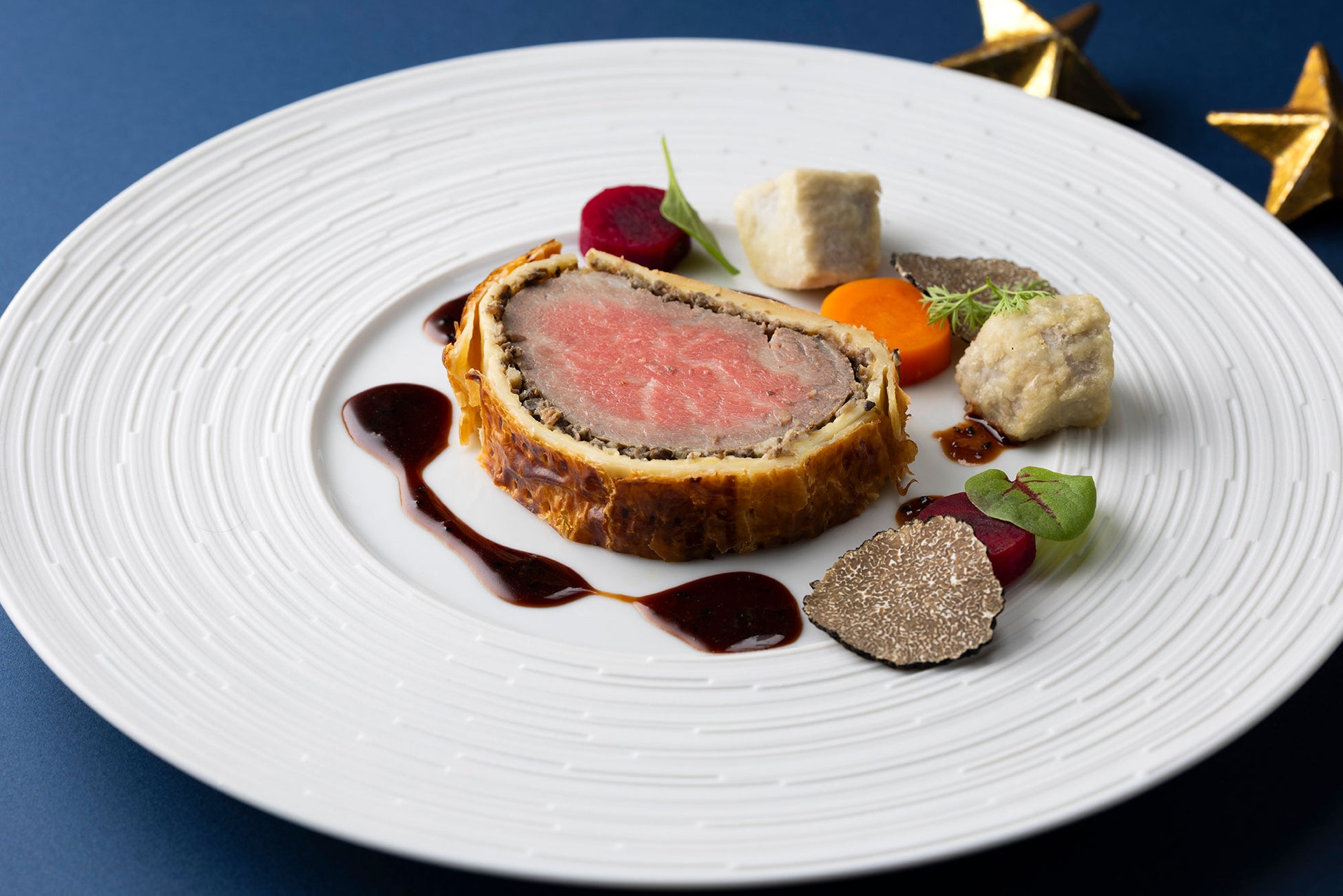 聖夜をモチーフにした5種の前菜や香り豊かなトリュフソースを合わせた牛フィレ肉のパイ包み焼きなど、高級食材を随所に取り入れたコースをご用意しました。