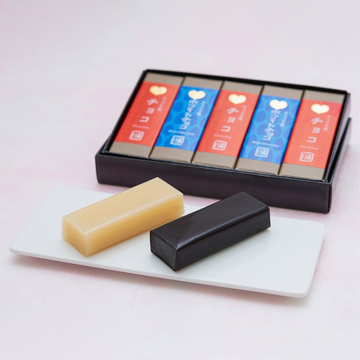 森八コクのあるブラックチョコレートとまろやかなホワイトチョコレートを、豊かな風味と滑らかな口溶けが特徴のチョコ羊羹2種に仕上げました。