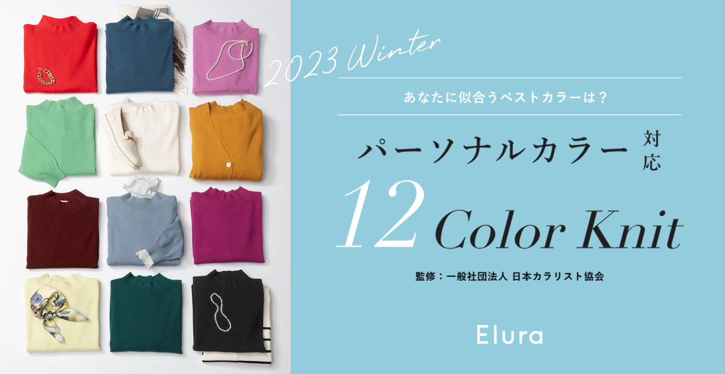 シリーズ累計2万枚を突破!“大人の悩みに効く服”Eluraが贈る「似合う色が必ず見つかる」12色の新作ニットは日本カラリスト協会監修・パーソナルカラー対応!