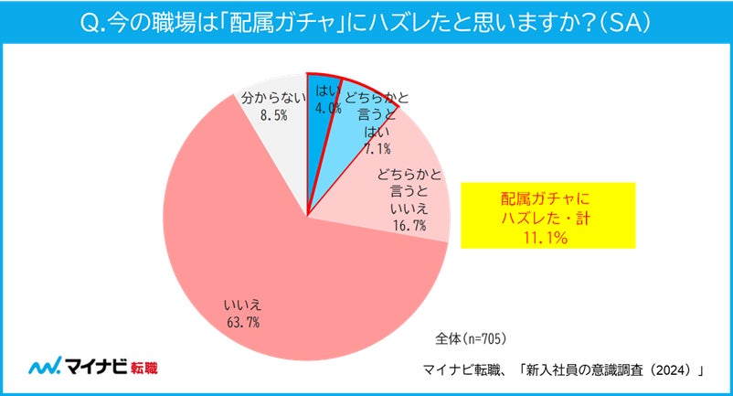 一方で、配属先や勤務地が思い通りではない、いわゆる「“配属ガチャ”に外れた」と回答した新入社員は11.1%に留まり、少数派となった。【図7、8】