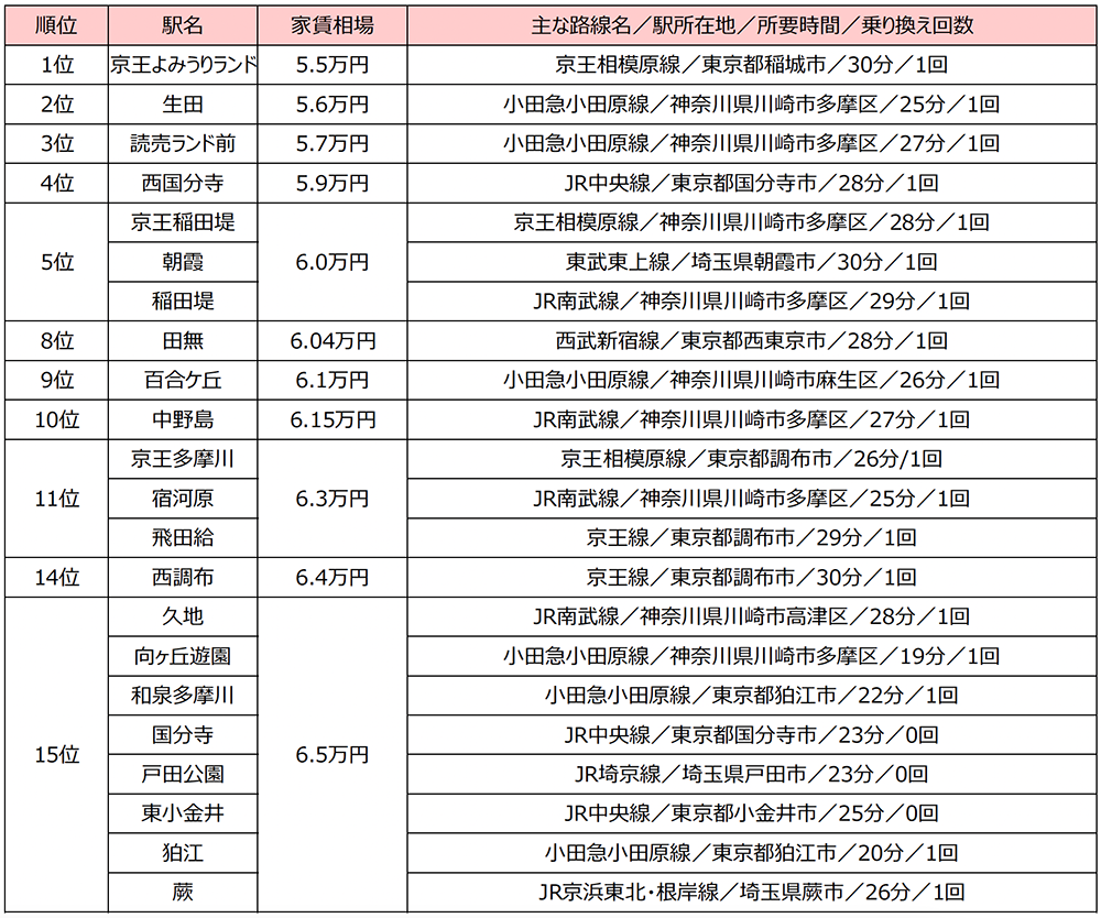 今回のランキングでは都内の人気の街にも楽に行けるうえ、日ごろは自然を身近に感じつつのんびり暮らせる駅も多数ランクインしました。都心までのアクセスのよさや家賃だけではなく、自分に合った住環境も踏まえて住まい探しをしてみてください。