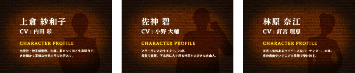 人気声優のみなさんが “悩みながら日々を生きる3人の大人”を演じるオーディオドラマを、ぜひ黒ラベルとともにお楽しみください。
