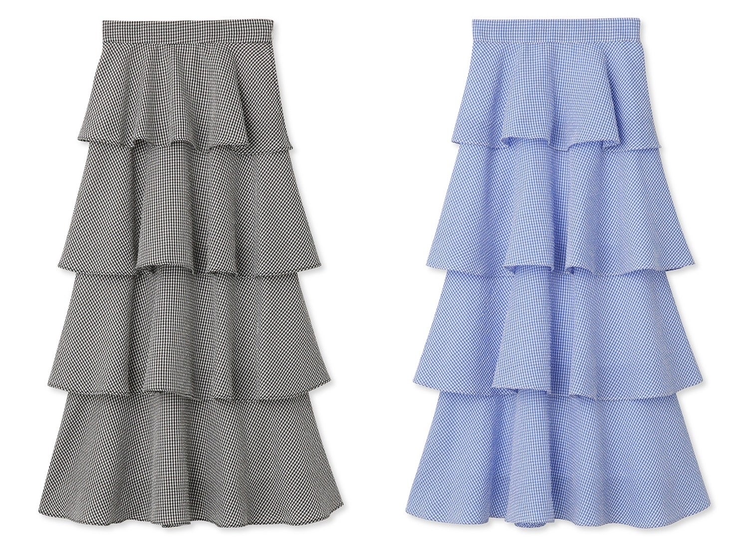 ブラウスと同素材のギンガムチェック柄のティアードスカート。