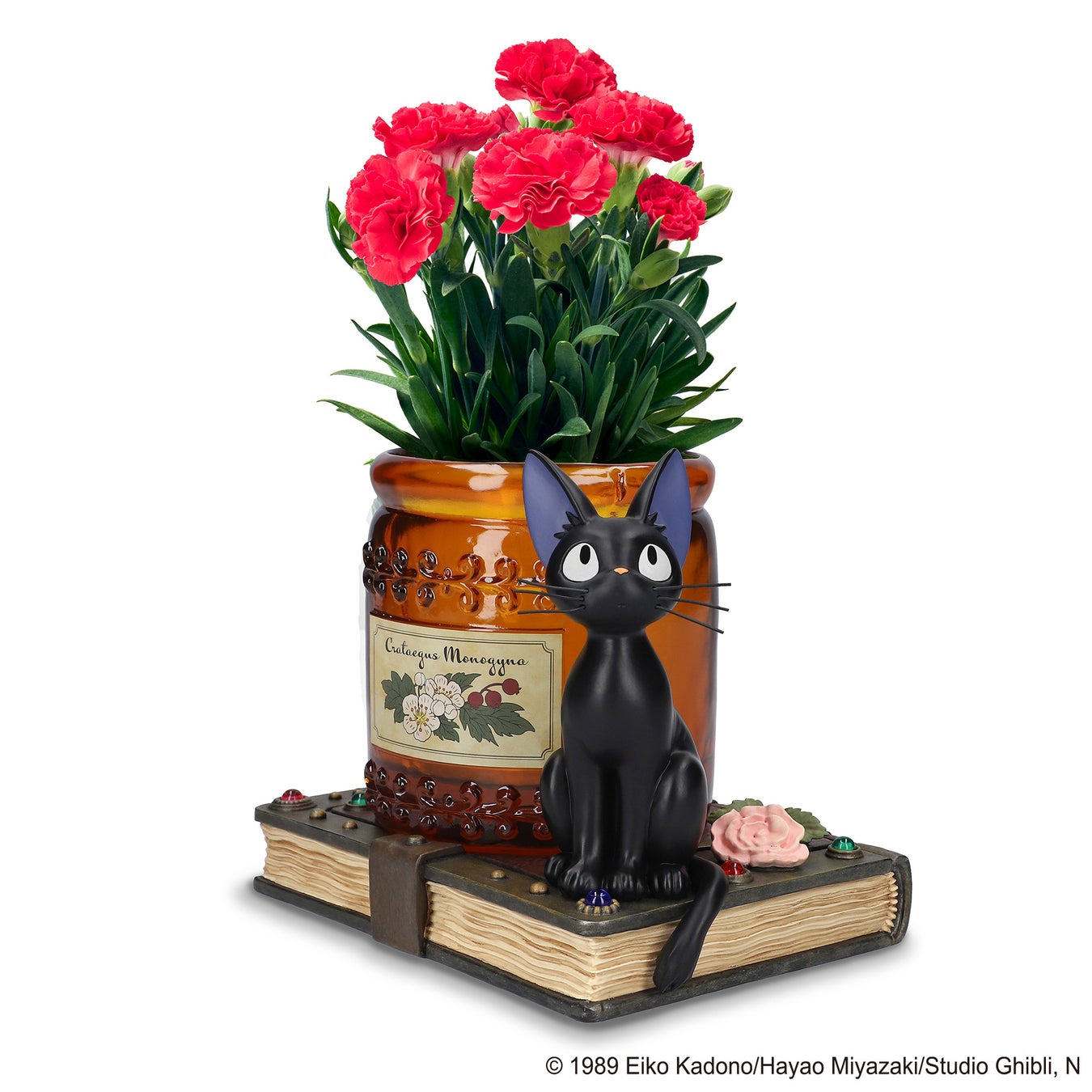 セット内容:魔女の宅急便 『コキリの魔法』(サイズ:約W140×H120×D175mm)、カーネーション~プリティ®いちご~<生花・3号鉢>、お花の育て方カード、魔女の宅急便 オリジナルメッセージカード