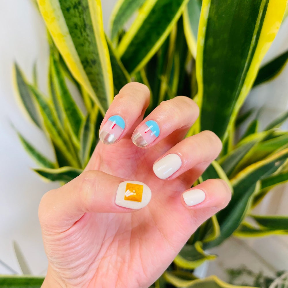 3.チップを置きジェルネイルやマニキュアまたは、ネイルシールで固定し完成です。
