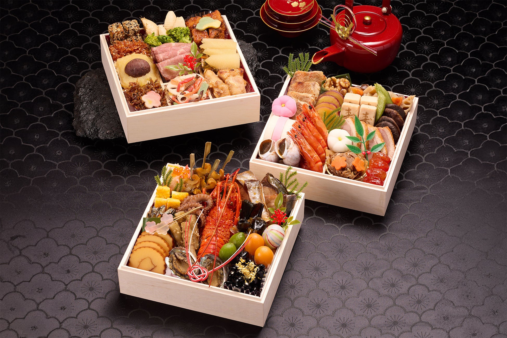 【内容】和の重を丸の内「しち十二候」齋藤料理長、洋の重を 恵比寿「ロジエ」金子シェフ、中華の重を神楽坂「ENGINE」松下シェフが監修。食材の魅力がたっぷり味わえるおせちです。