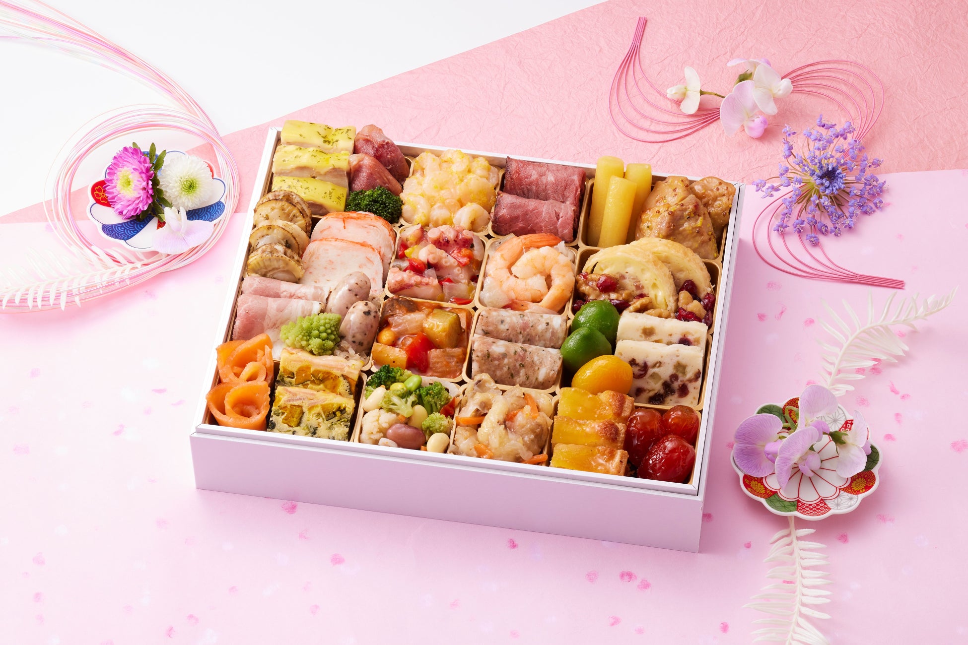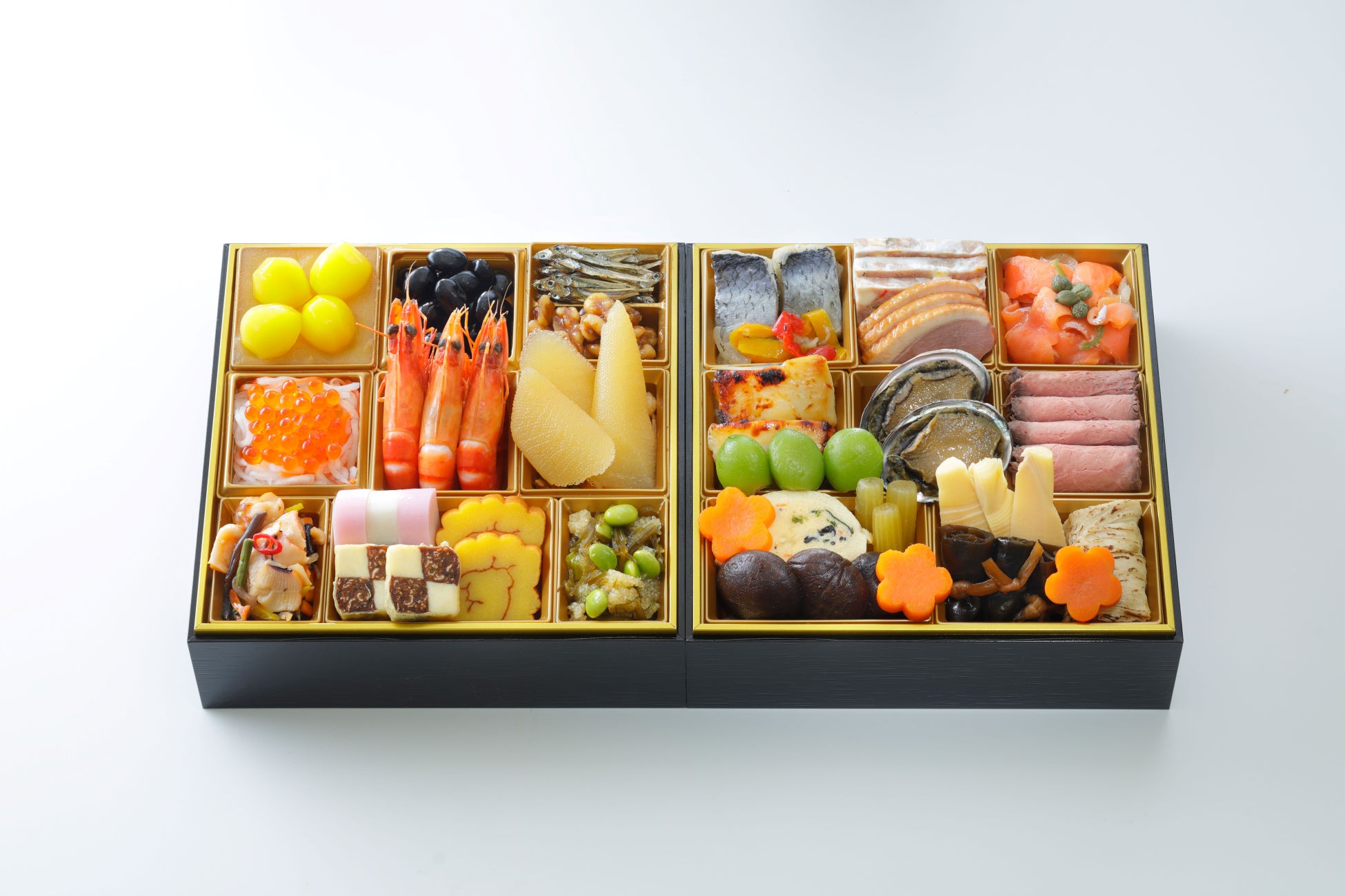 【内容】伝統的な和の味わいと彩り豊かな和洋折衷の品々をお楽しみいただける二段重です。
