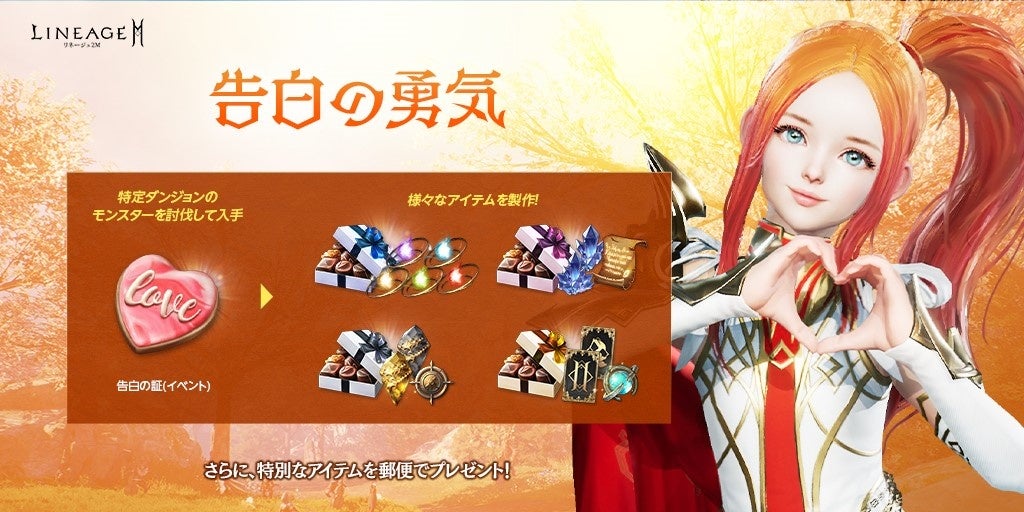 また、期間中、毎日午前9時に「告白の証(イベント)」や「成長のポーション(10%)(イベント)」などのアイテムをゲーム内郵便でお送りします。