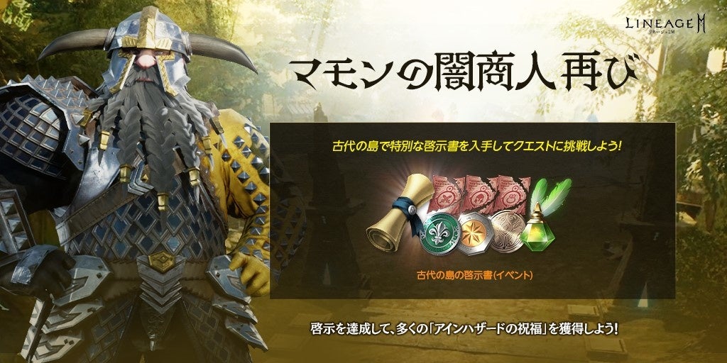 『リネージュ2M』アリーナ ダンジョン「古代の島」が初のマスター ダンジョンとして期間限定で登場!神話級スキル「オーソリティー」が100%ドロップするイベントを開催!