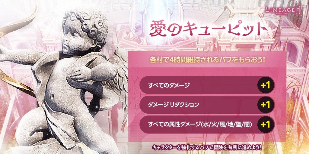 期間中、アデン大陸の各村に「キューピットの銅像(イベント)」が出現します。