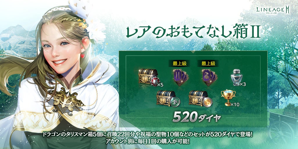 1日1回520ダイヤで購入できる「レアのおもてなし箱II」が登場しました。