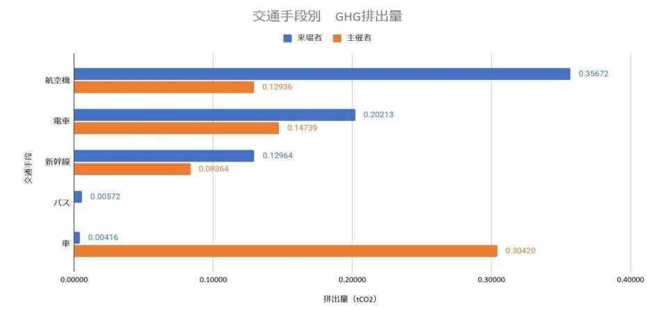 航空機と車による排出量への影響が大きくなりました。イベント会場への移動手段の違いで排出量が大きく異なることを意識していただけるように工夫していきます。