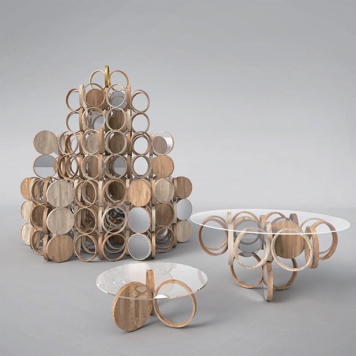 クリスマスシーズンを華やかに彩る木でできたツリーは、どちらのツリーも小さな木のユニットを積み上げ、それぞれの街の特色を表現しています。また、複数の樹種を使うことで森の循環・育成に貢献します。ツリーは展示後、隈研吾デザイン、カリモク家具制作のテーブルに生まれ変わり、クリスマスが終わった後も別の場所で生き続けます。
